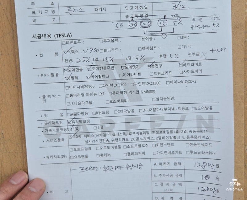 2. 시공 서비스 또는 품목 : 틴팅 및 PPF필름, 서비스품목10종