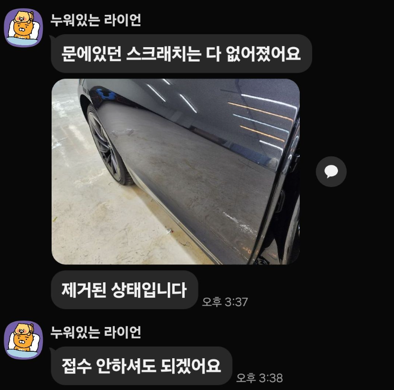 샵에서 세차한번 돌려주시고 눈에 찾기도 힘든부분까지 핸드폰으로 싹다 찾아내서 보내주시더라구요