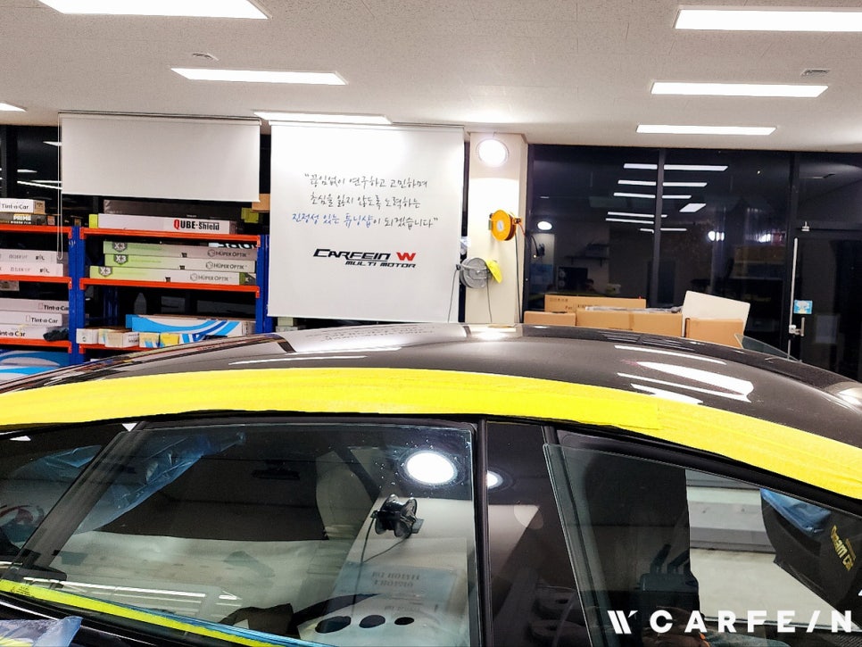 우선 틴팅작업을 하기전 기본적인 마스킹 , 차량 보호를 위한 작업을 준비 합니다.