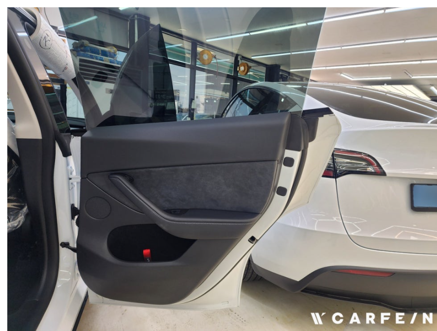 테슬라 모델Y의 뒷자석은 전자식 도어로