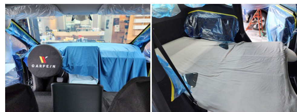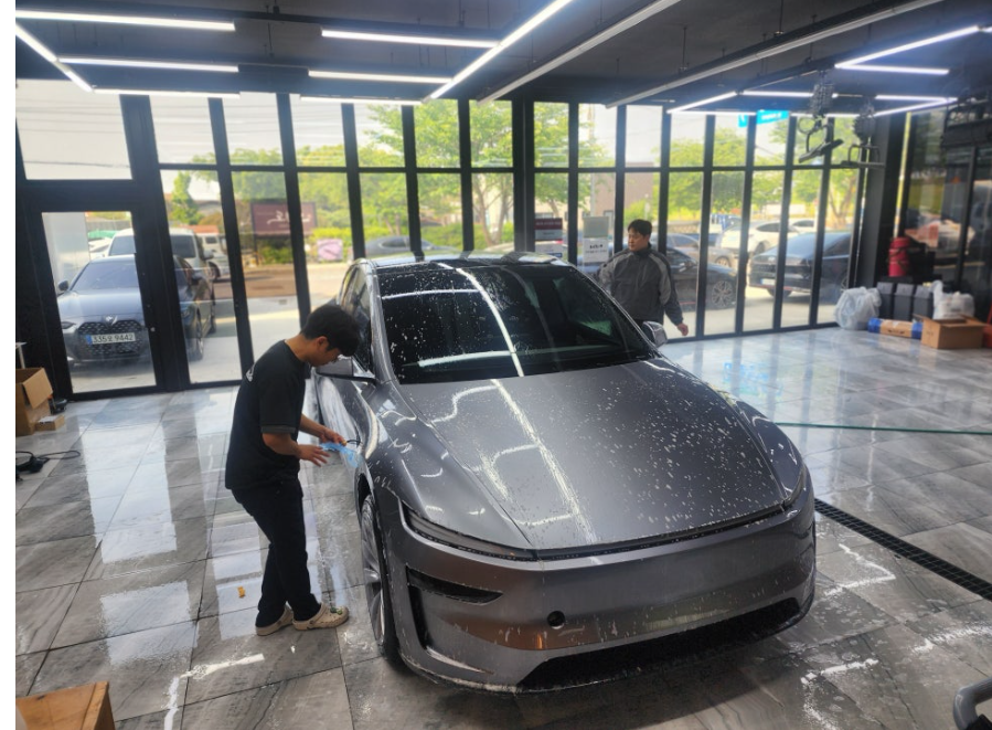테슬라 주니퍼 썬팅을 위한 실내 마스킹은 필수입니다.