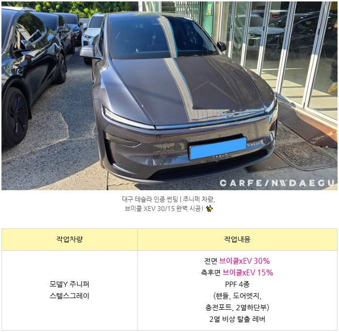 [테슬라 모델Y 스텔스그레이] 브이쿨xev 썬팅
