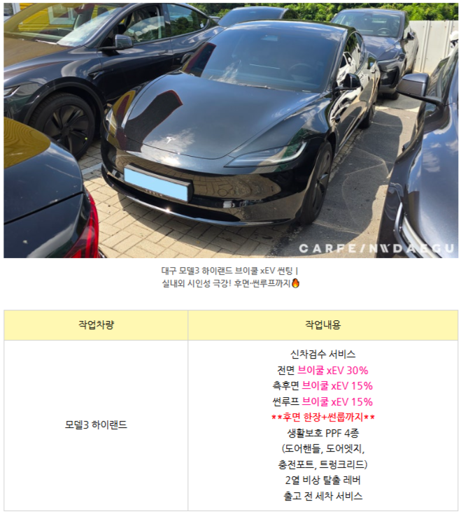 [테슬라 모델3 하이랜드] 브이쿨 xEV 썬팅