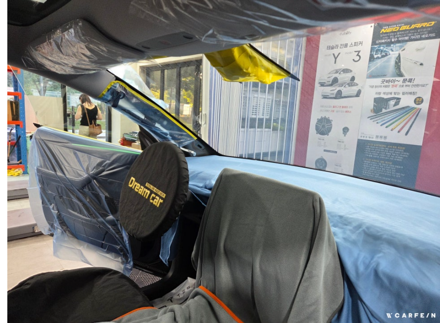 테슬라 썬팅을 시작하기 전 마스킹 작업은