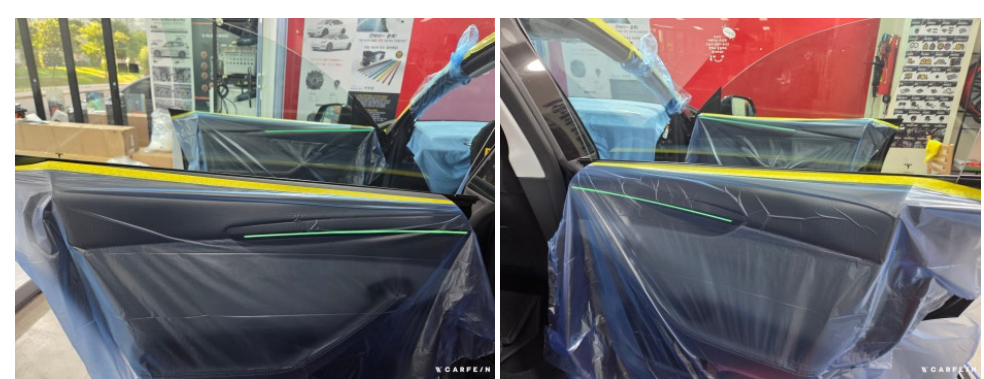 시공 전 필름 세척 및 차량 내부 정전기도 없애야 합니다.