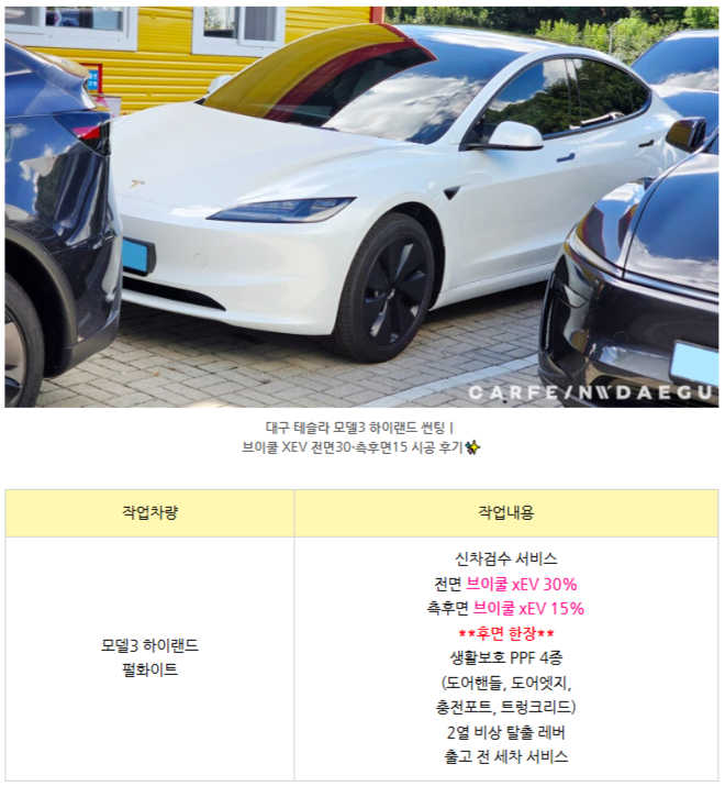 [테슬라 모델3 하이랜드] 브이쿨 xEV 썬팅