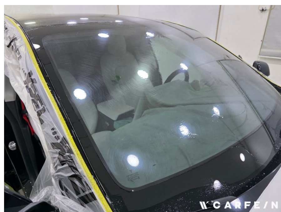 이후 히팅건을 사용해 차 유리 곡선에 맞게