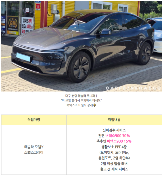 [테슬라 모델Y 스텔스 그레이] 버텍스900 썬팅 후기