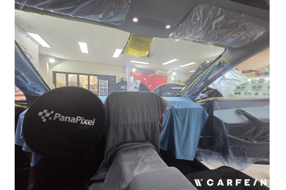 시트와 차량 도장면에 코팅막을 올리는 작업이니 시공을 다 끝낸 가장 마지막 순서에 이 시공들을 하고 있습니다.