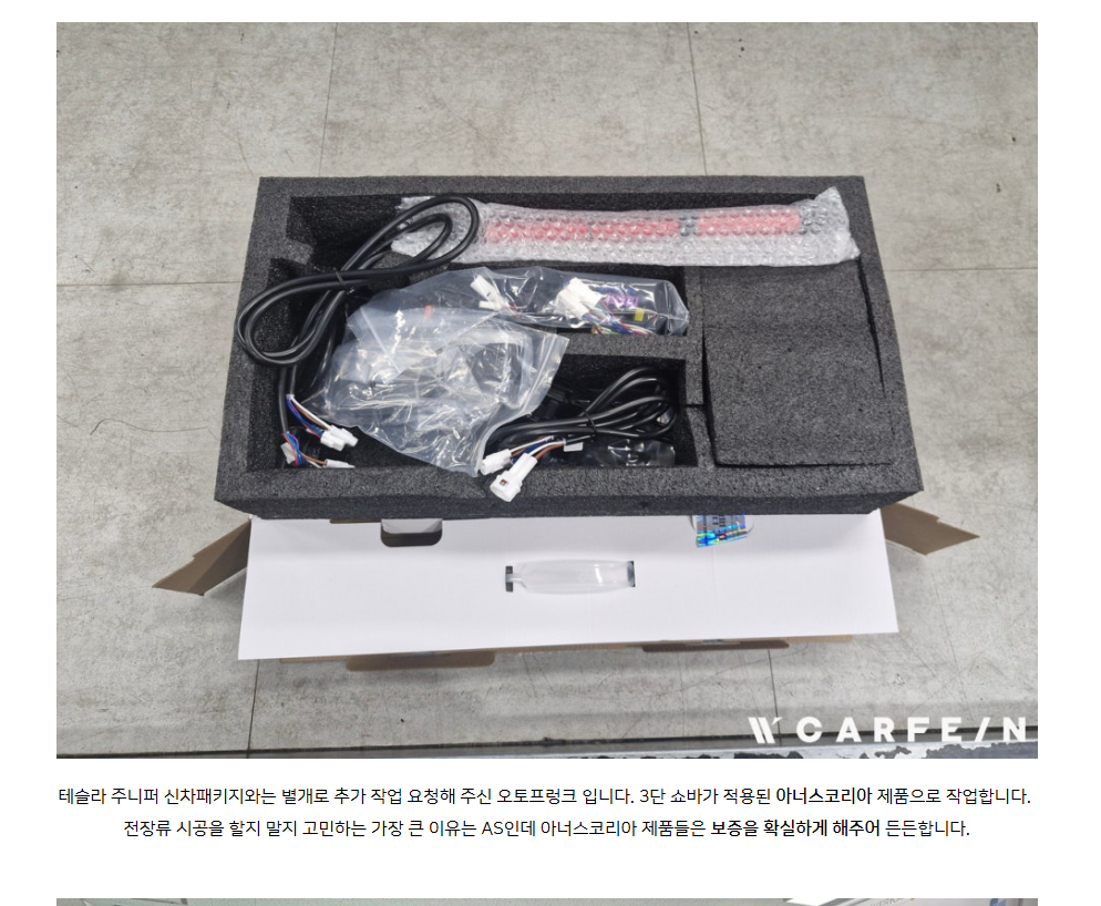 테슬라 작업 경험 많고, 신차패키지의 퀄리티 좋고, 전장류 시공까지 한 번에 할 수 있는데