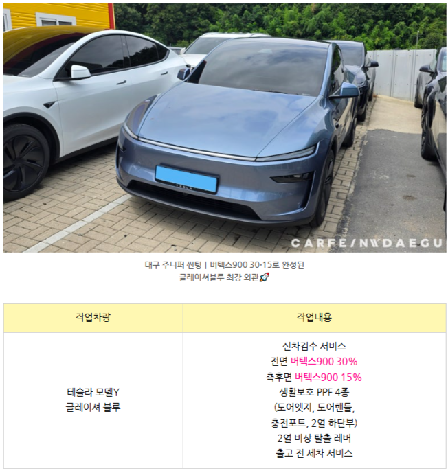 [테슬라 모델Y 글레이셔블루] 버텍스900 썬팅