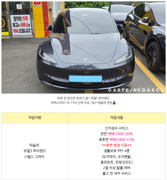 [테슬라 모델3 하이랜드] 버텍스900 후면 한장 썬팅