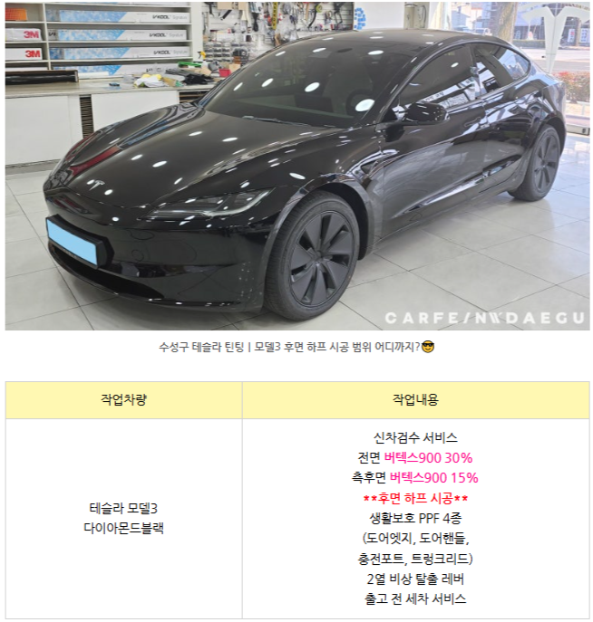 [테슬라 모델3 다이아몬드블랙] 버텍스900 썬팅