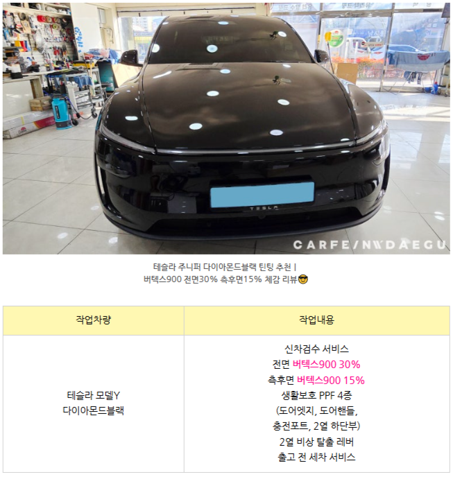 [테슬라 모델Y 다이아몬드블랙] 버텍스900 전면30 측후면15 썬팅