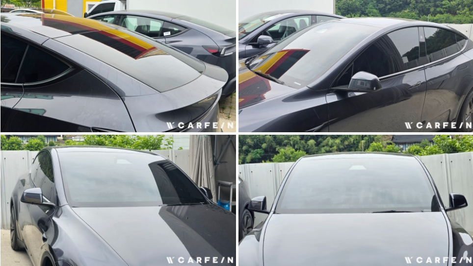 특히 테슬라는 일반 차량과 구조적인 차이가 있습니다. 유리 면적이 매우 넓습니다. 전면부터 루프까지 이어지는 구조 때문입니다. 이 구조 때문에 열 유입이 크게 발생합니다. 그래서 썬팅 필름 선택이 매우 중요합니다.