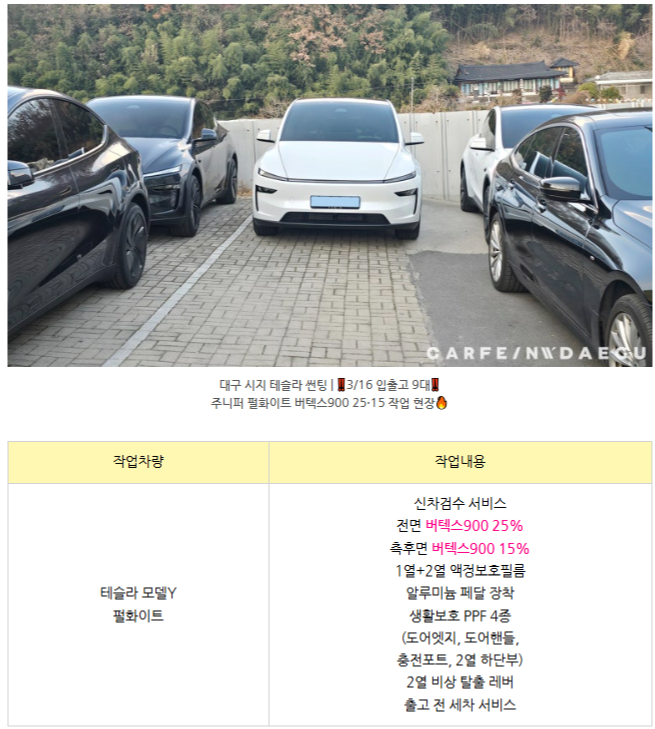 대구 시지 테슬라 썬팅 | ‼️3/16 입출고 9대‼️ 주니퍼 펄화이트 버텍스900 25·15 작업 현장