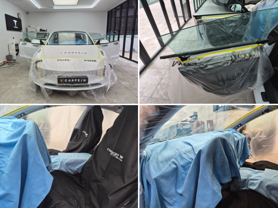 썬팅을 하기 전, 스크래치나 오염을 방지하기 위해
