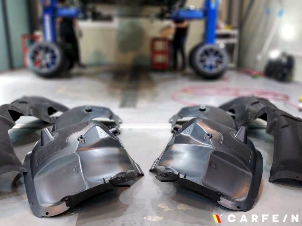 휀다 커버를 탈거하고 시공 준비를 합니다.
