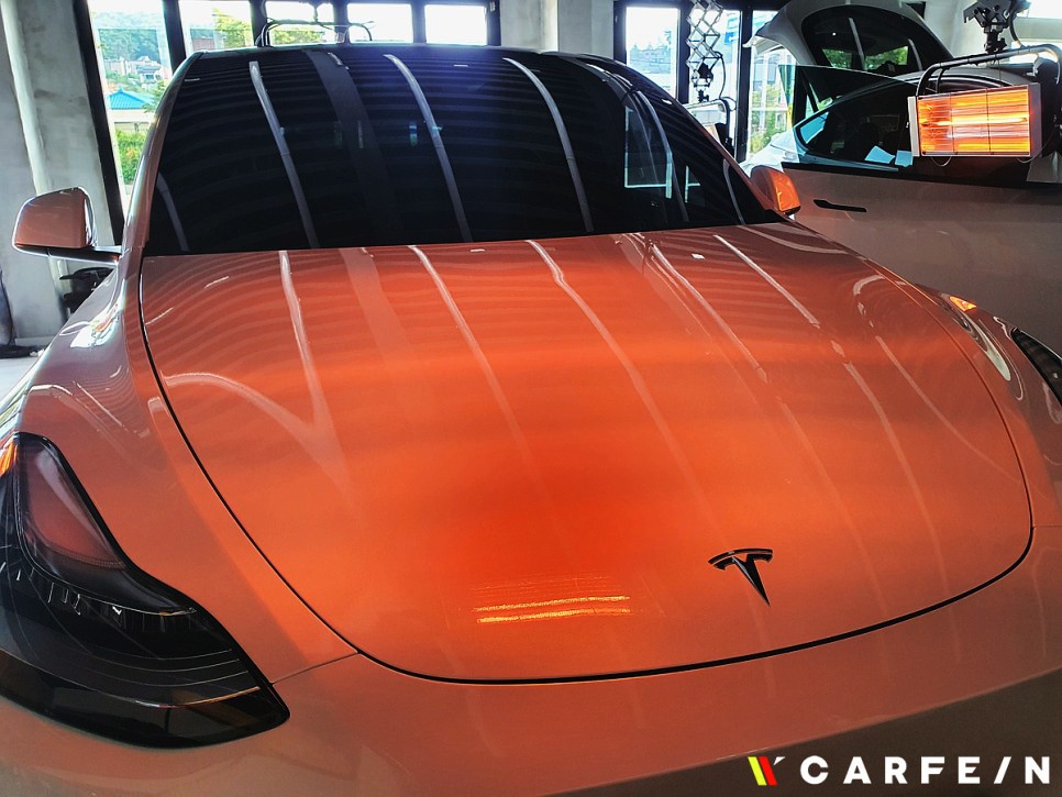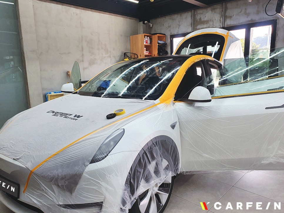 유리막 코팅 작업을 통해 테슬라 모델Y
