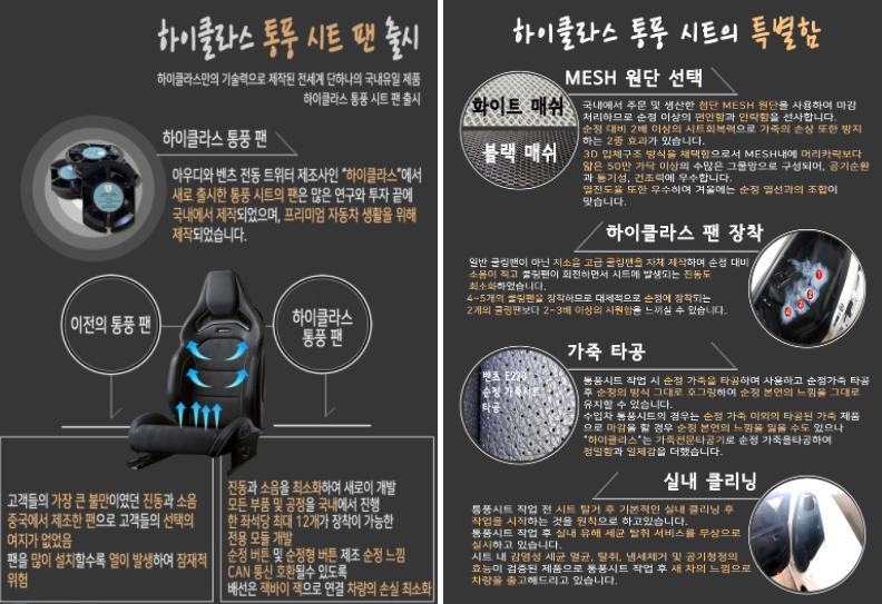 기존의 국내 순정 통풍시트와는 다른 개념이랍니다~