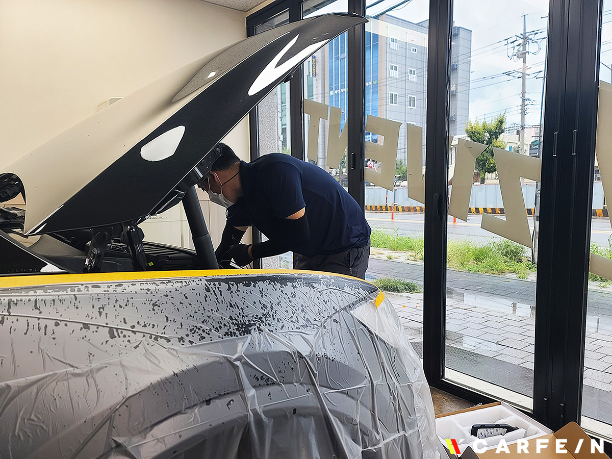 모델X 오토프렁크 시공 전 마스킹은 필수!