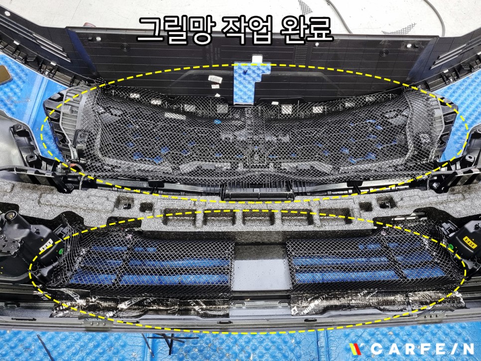차량의 그릴 간격이 넓어 그릴망 작업을