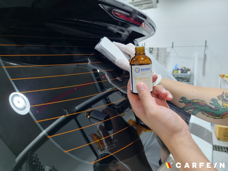 이어 전체 유리에도 발수코팅을 진행해 보았는데요!