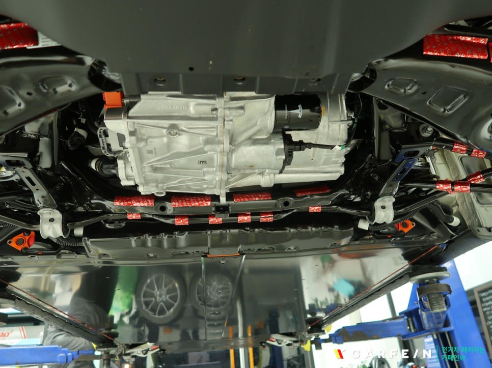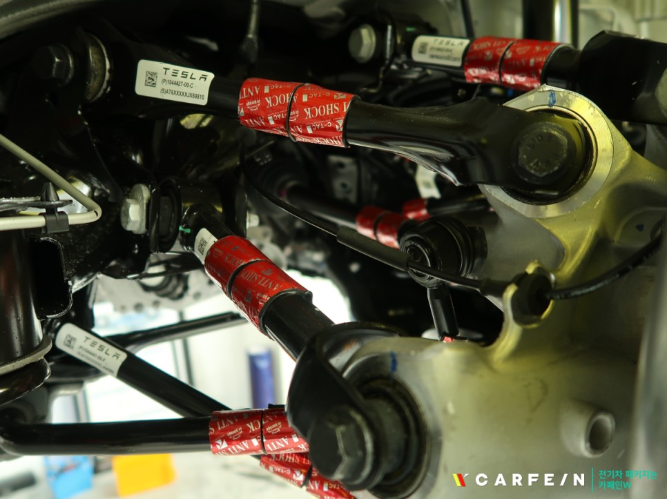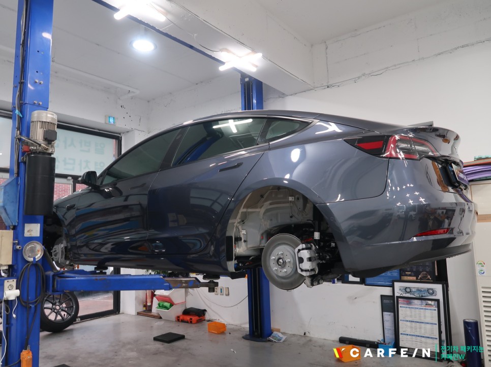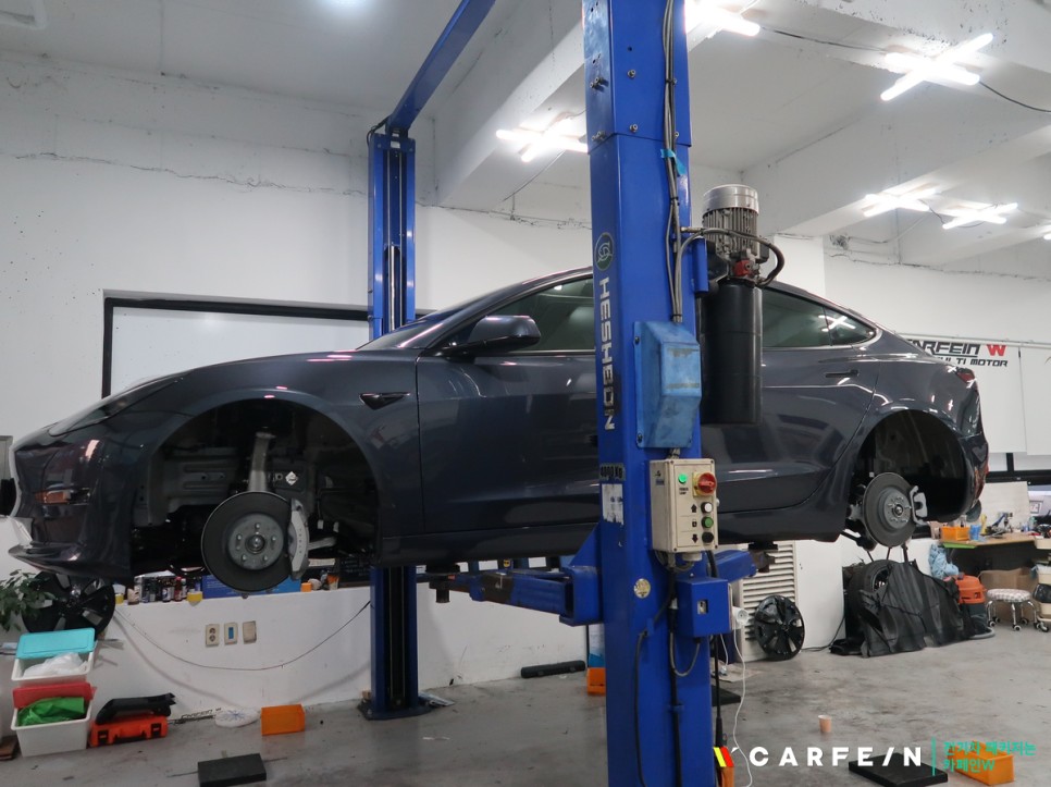 테슬라 모델3 리프트로 띄어 올려