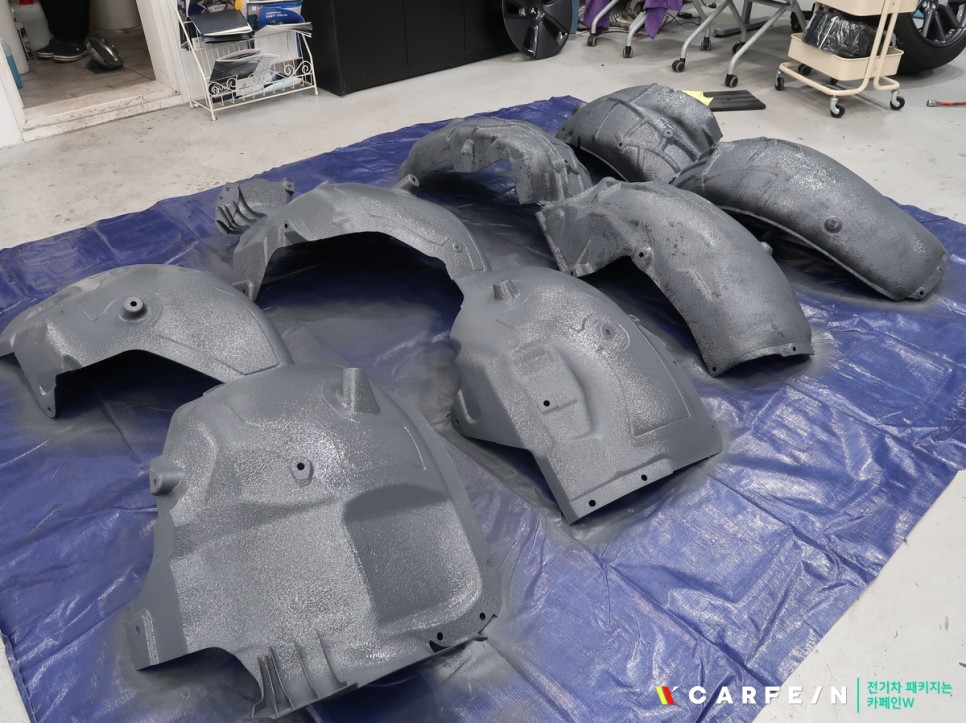 탈거한 휀다커버에 분사를 해주었습니다.