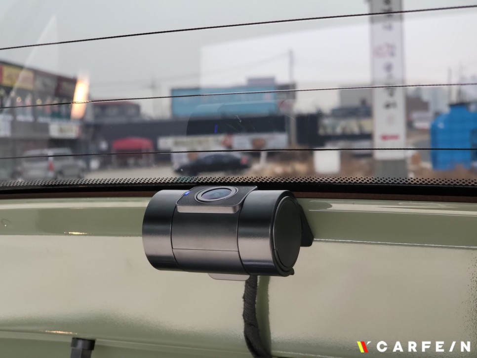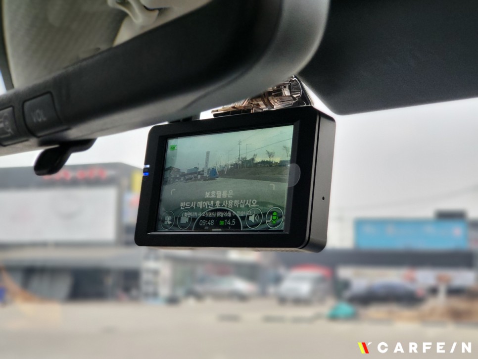 운전 중 시야 방해가 없는 곳으로 장착하며