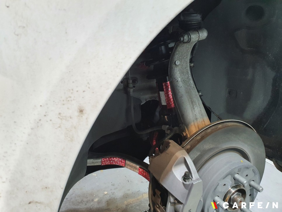 차량의 휠 탈거 후 바로 안티쇼크 패치를