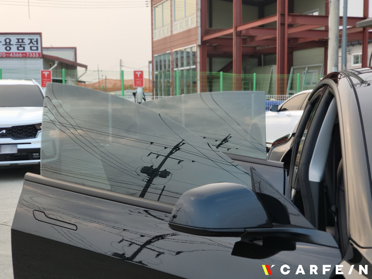 테슬라 썬팅 작업이 진행이 되고 있기 때문에