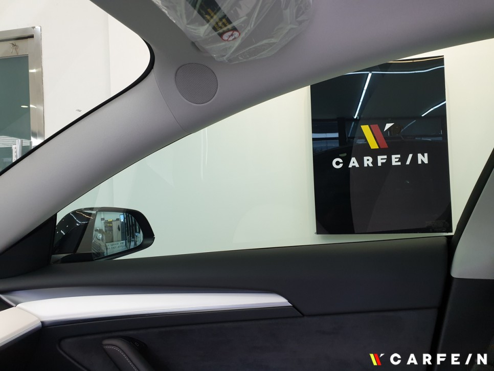 테슬라 측면 유리 시공 시에는
