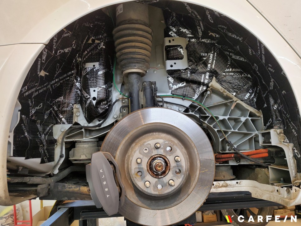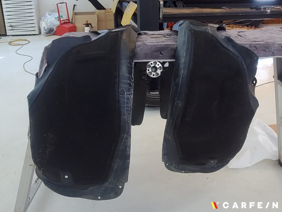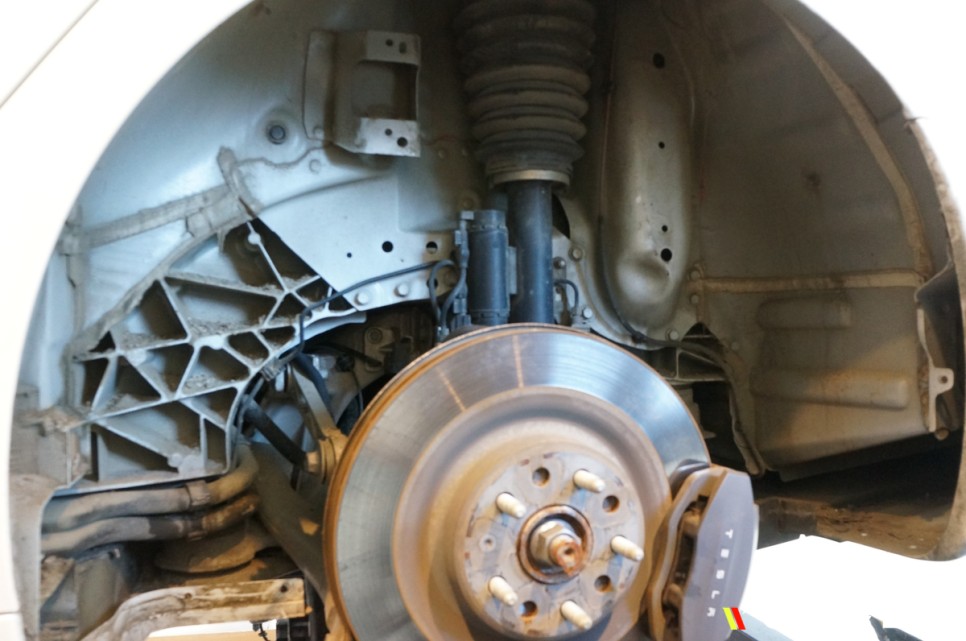 휠과 휀다커버를 탈거해주고