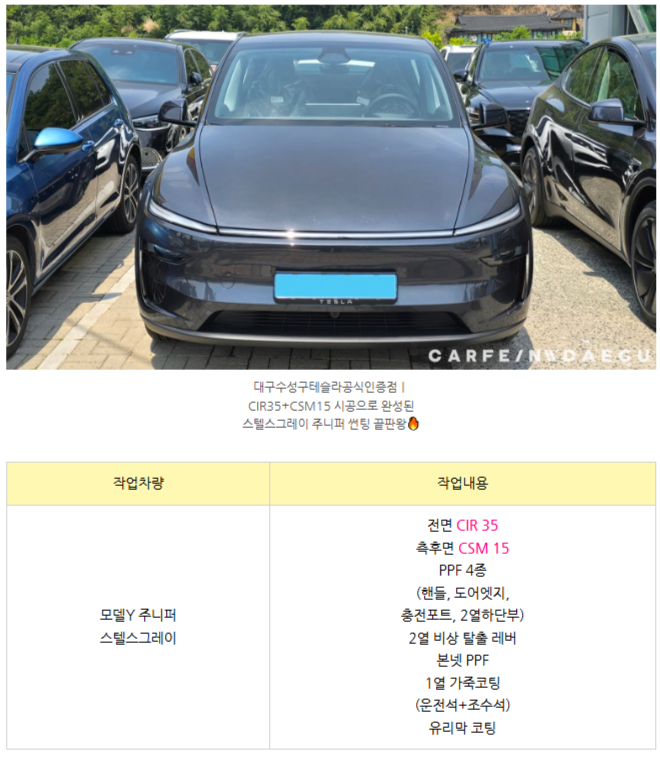 대구수성구 테슬라 공식 인증점에서 시공된 실차