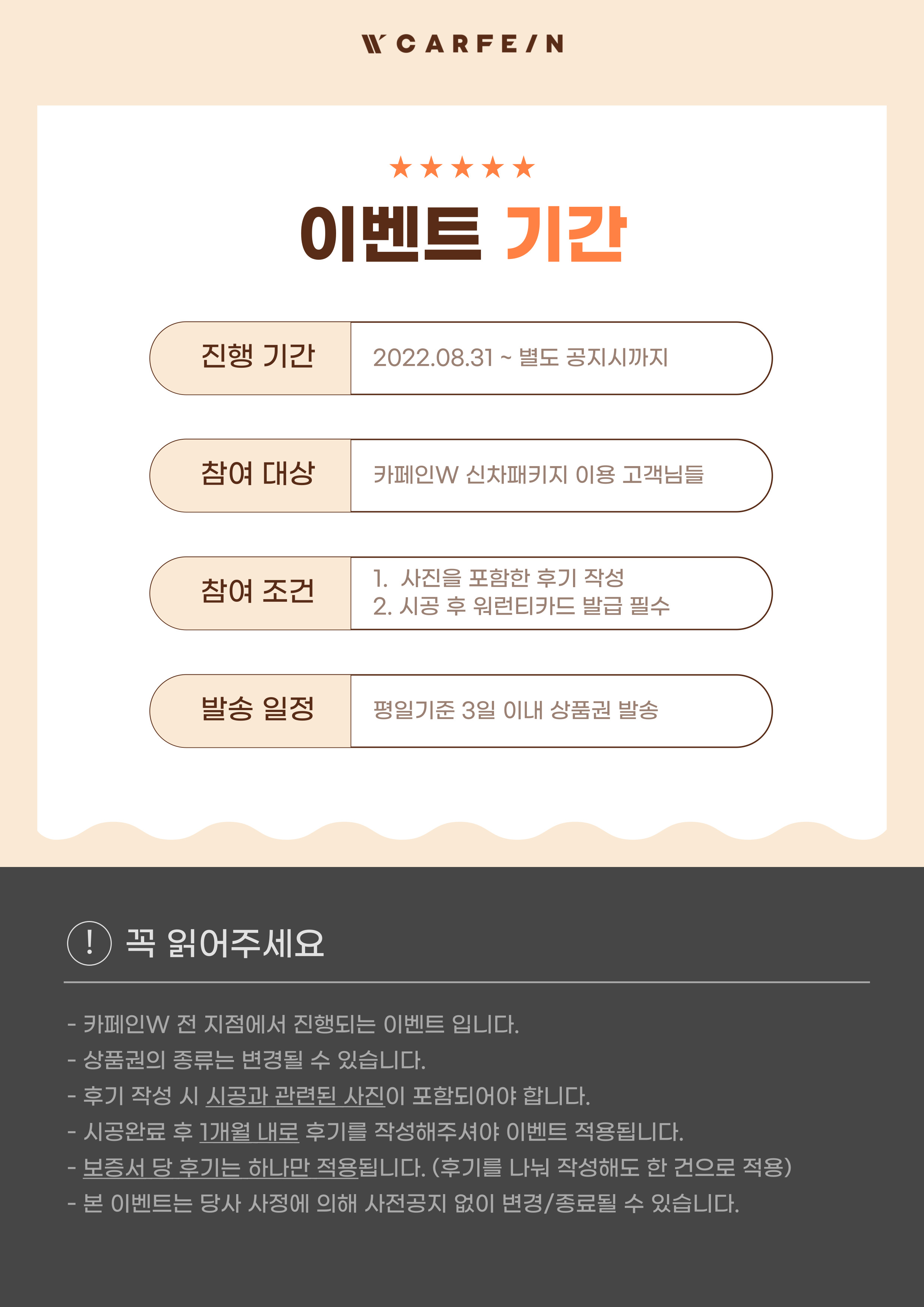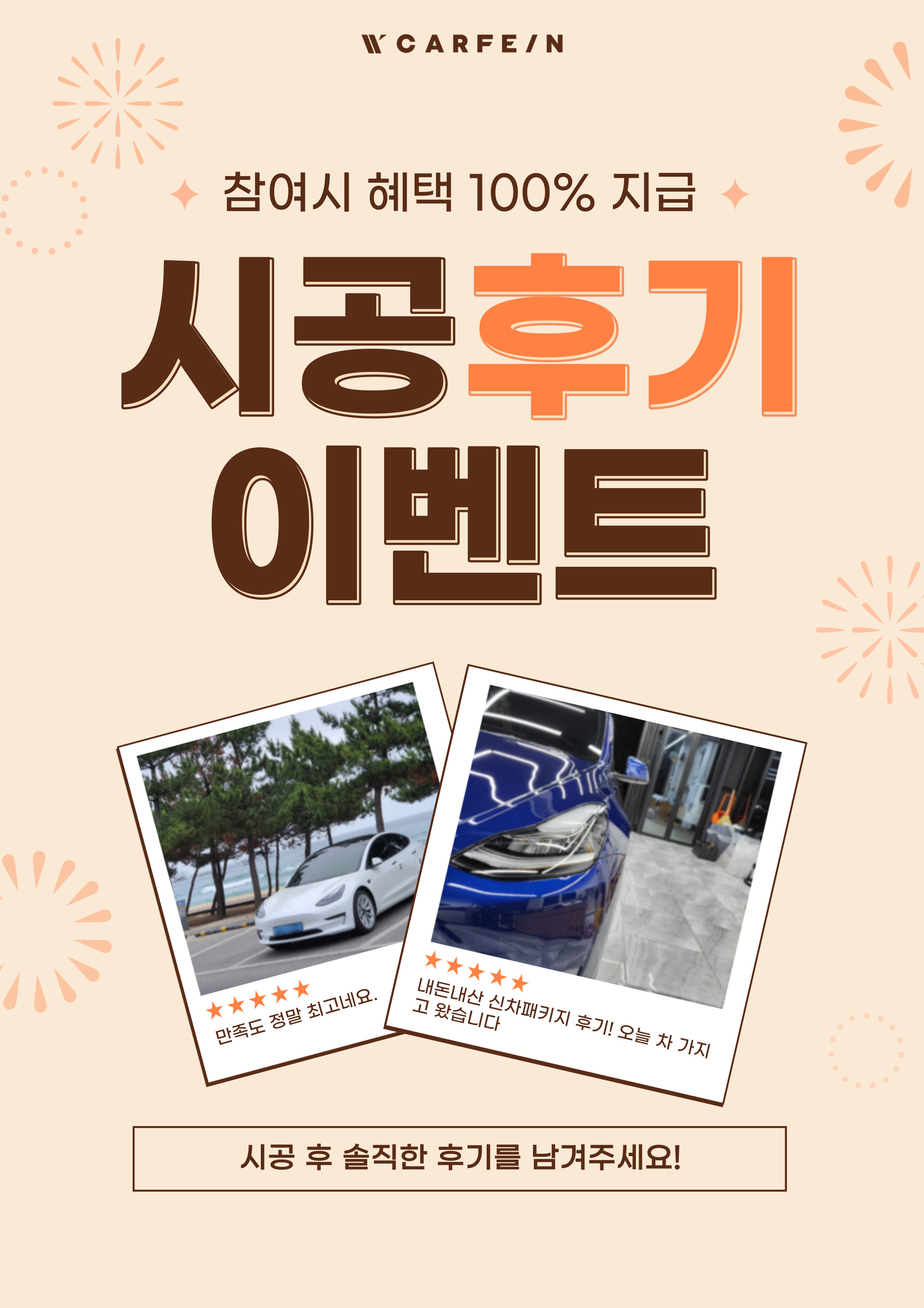 ※단, 테슬라 카페 (TKC)에 작성하는 후기는 카페인W 후기이벤트에 적용되지 않습니다. 이 점 참고바랍니다.