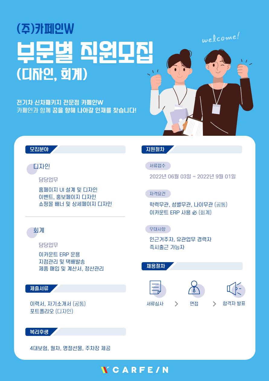 (주)카페인W 부문별 직원모집 (디자인, 회계)
