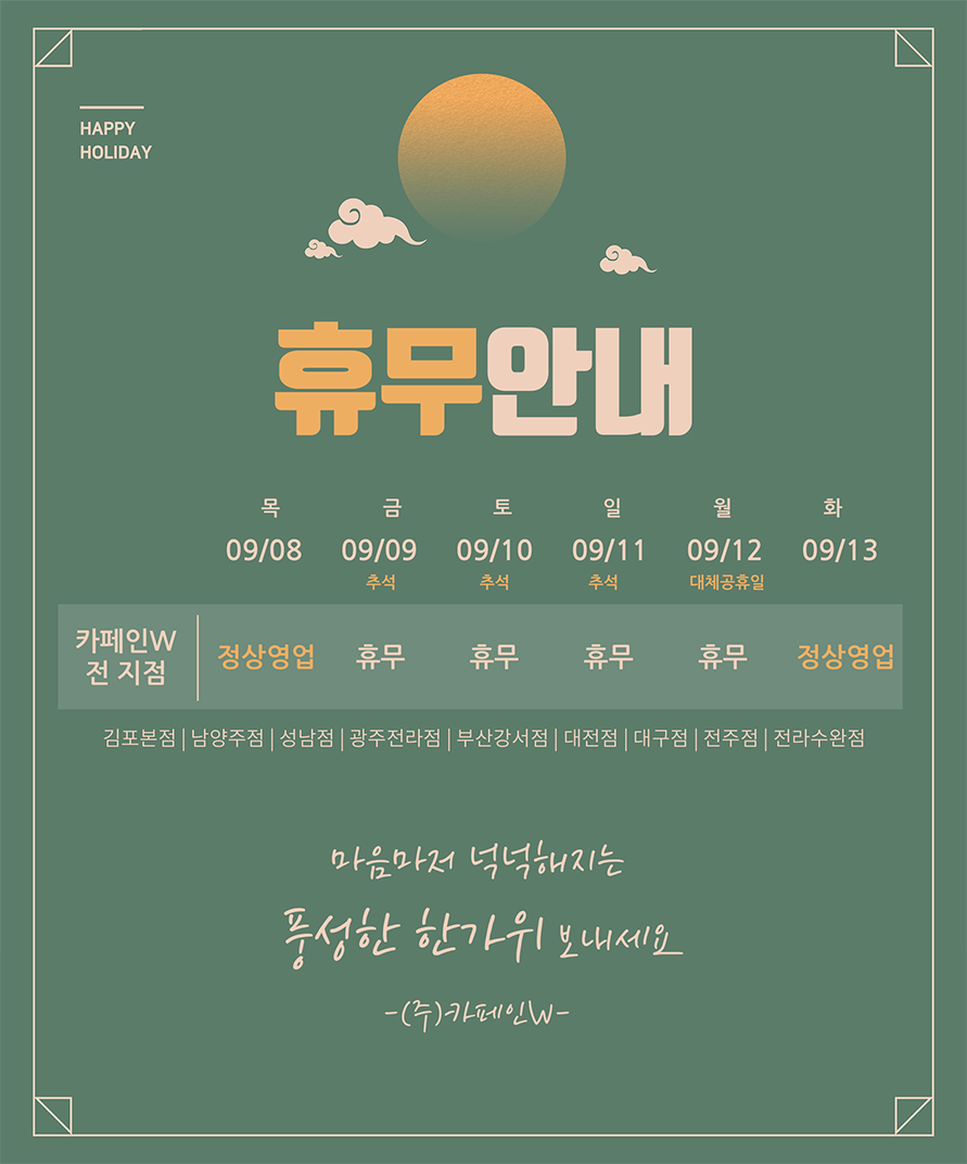 보름달처럼 넉넉한 한가위 보내세요 (휴무안내)