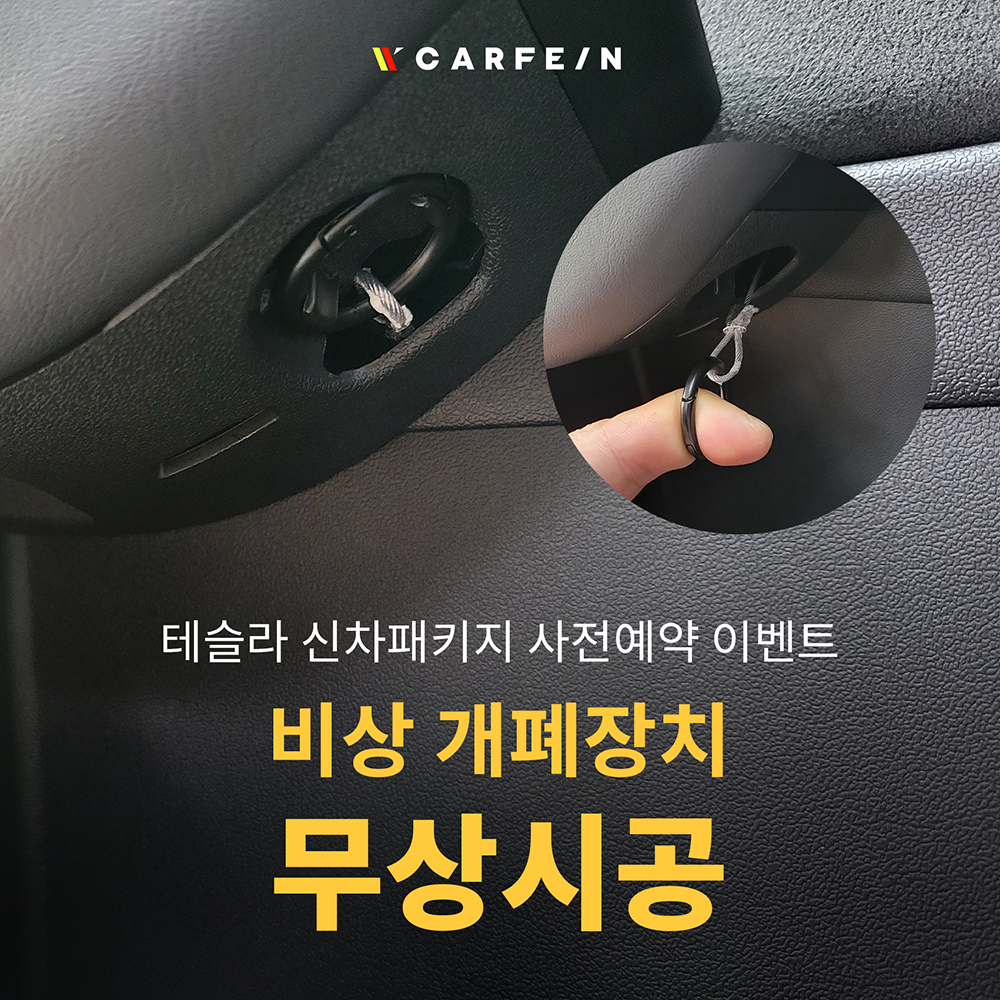 관계자는 “방전 및 위급 상황 시 뒷자석에서 비상탈출을 할 수 있게 도와주는 수동 개폐 장치로 뒷자석에 동승자가 자주 탑승한다면 꼭 필요한 테슬라 시공이다. 이번 신차패키지 사전예약 이벤트를 통해 무상으로 받을 수 있는 좋은 기회다”라고 전했다.