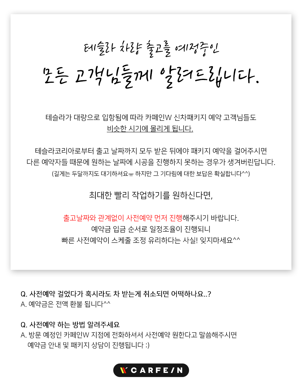 테슬라 출고 예정 고객님들께 알립니다.
