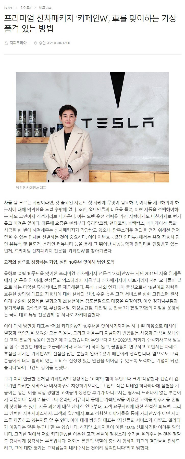 [NEWS] 프리미엄 신차패키지 \'카페인W\', 車를 맞이하는 가장 품격 있는 방법