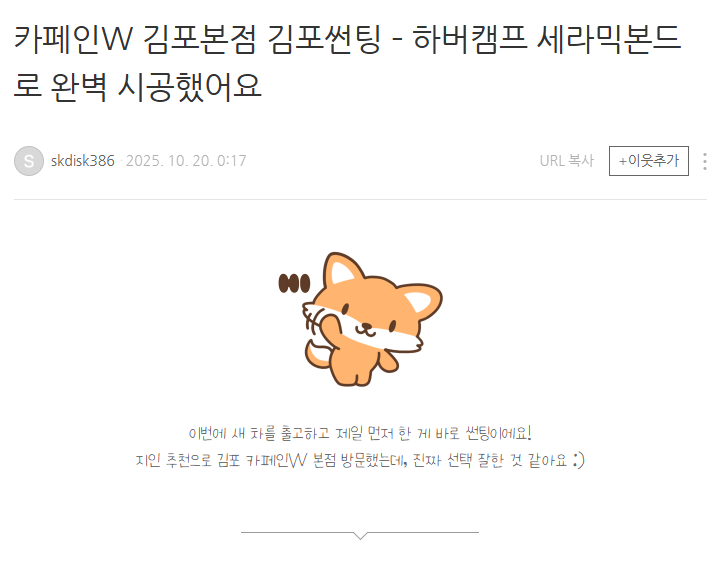 카페인W 김포점 김포썬팅 – 하버캠프 세라믹본드로 완벽 시공했어요