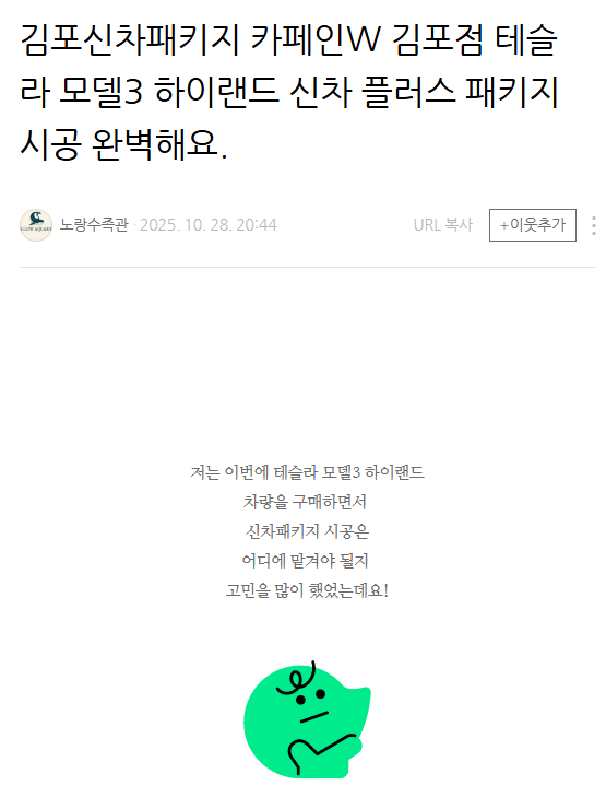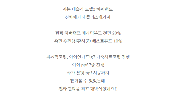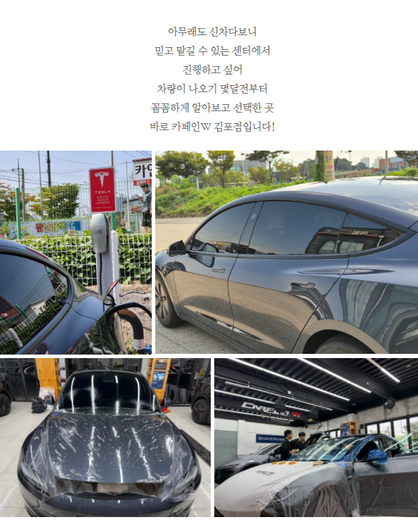 김포신차패키지 카페인W 김포점 테슬라 모델3 하이랜드 신차 플러스 패키지 시공 완벽해요.