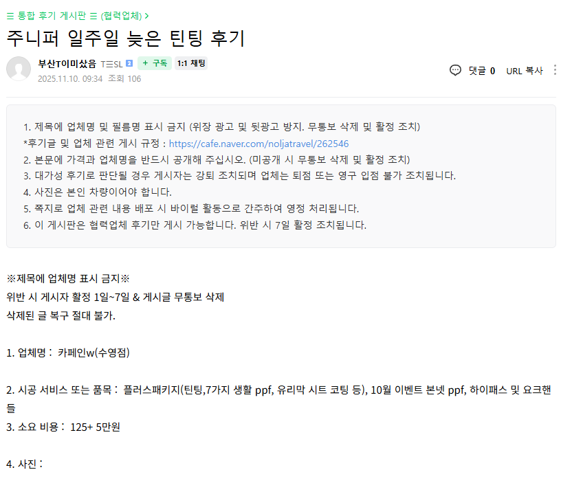 주니퍼 일주일 늦은 틴팅 후기