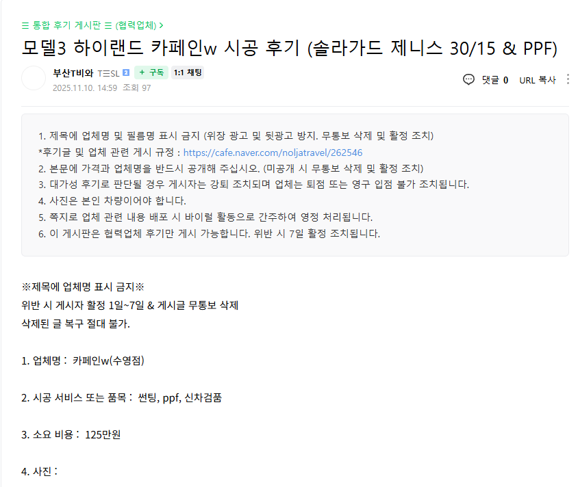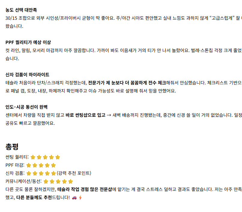 모델3 하이랜드 카페인w 시공 후기 (솔라가드 제니스 30/15 & PPF)