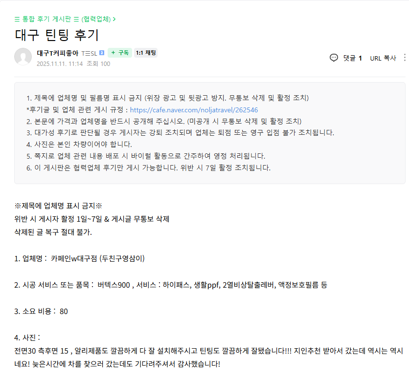 대구 틴팅 후기