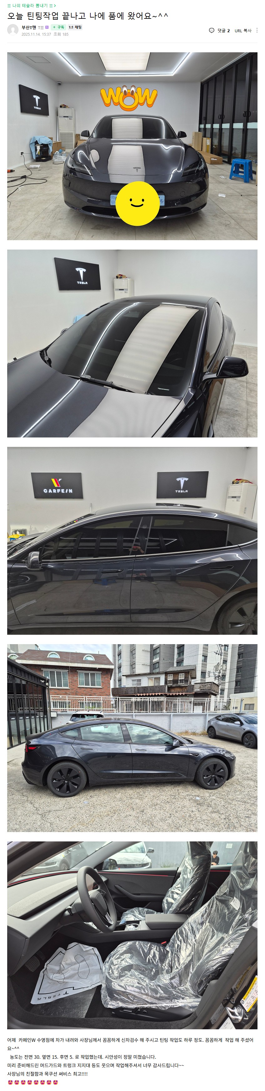 오늘 틴팅 작업 끝나고 나에 품에 왔어요 ~^^