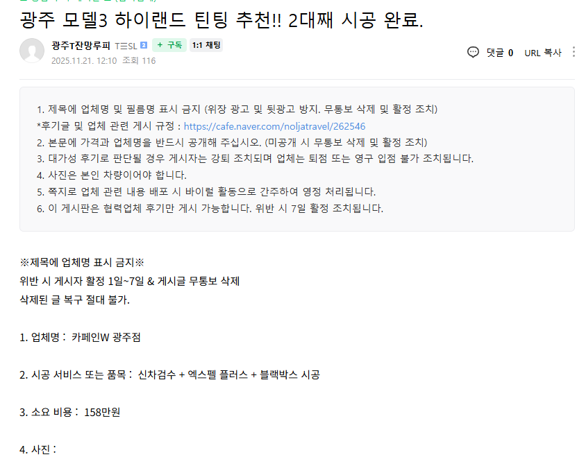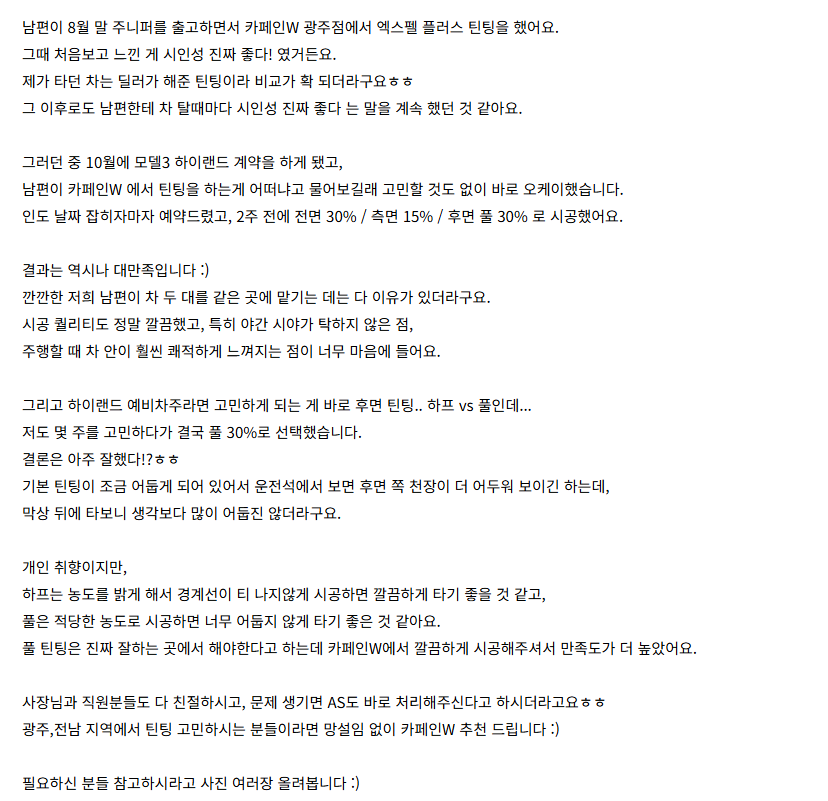 광주 모델3 하이랜드 틴팅 추천!! 2대째 시공 완료.