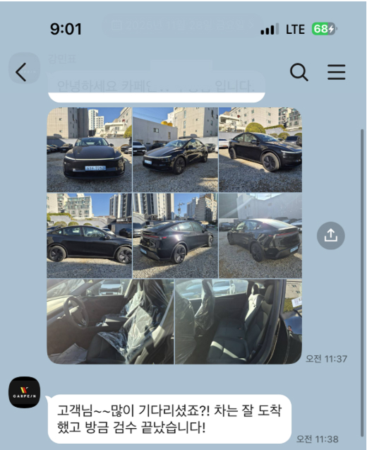 카톡으로 친절하게 인도 해주시고 사진 여러장을 보내주셨습니다. 차량에 궁금하던거 이것저것 전화로 물어보아도 친철하게 다알