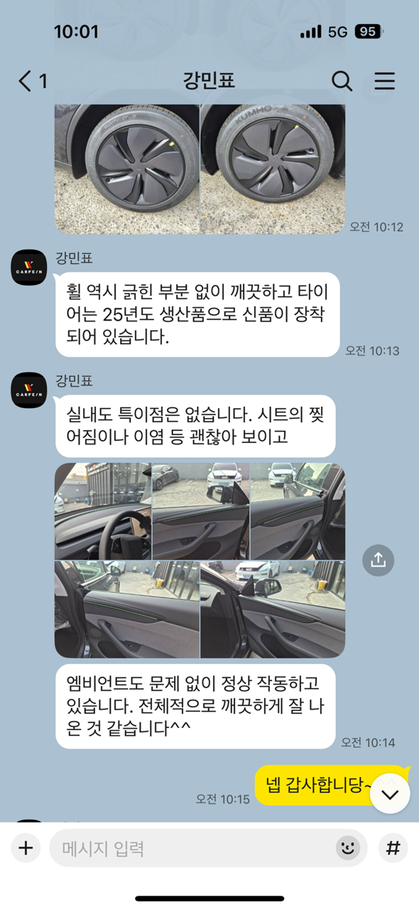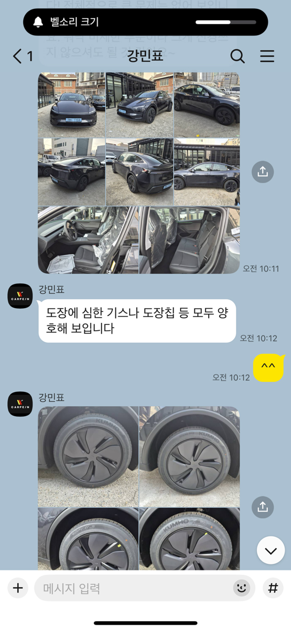 이렇게 탁송받고나서 신차 검수 실시간으로 카톡으로 공유해주시면서 꼼꼼하게 검수해줬어요~~